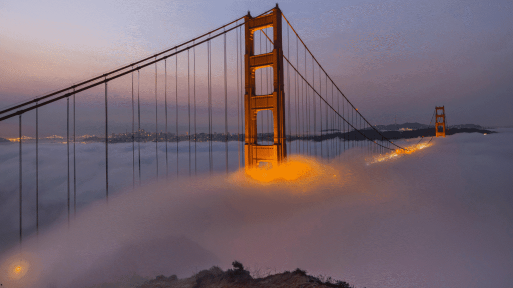 A perfect photo op: Take a shot of the Golden Gate Bridge shrouded in fog. (Image Placement)